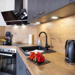 Die schöne moderne Küche im 1. OG bietet allen Komfort, den du zum Kochen benötigst,