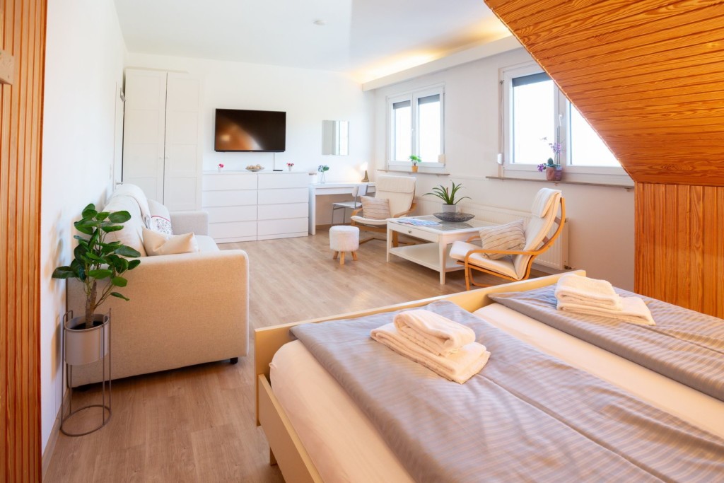 Im Casa Natura im Harz gibt es zahlreiche Unterhaltungsmöglichkeiten, die sicherstellen, dass Deine Zeit hier sowohl entspannend als auch abwechslungsreich ist. Entspanne auf dem privaten Balkon Deiner Unterkunft. Hier kannst Du die Ruhe der Natur genießen, ein Buch lesen oder einfach nur die Aussicht bewundern. In der Unterkunft findest Du moderne Unterhaltungselektronik wie 4 große Smart TVs mit Netflix und 100 Mbps High-Speed WLAN, damit Du Deine Lieblingssendungen verfolgen oder mit Freunden und Familie in Verbindung bleiben kannst. Unsere Tischtennisplatte bietet eine unterhaltsame Möglichkeit, Dich mit Freunden und Familie zu messen. Und wenn Du Lust auf etwas Entspannung hast, nutze die Sauna (gegen Gebühr) im Casa Natura.
