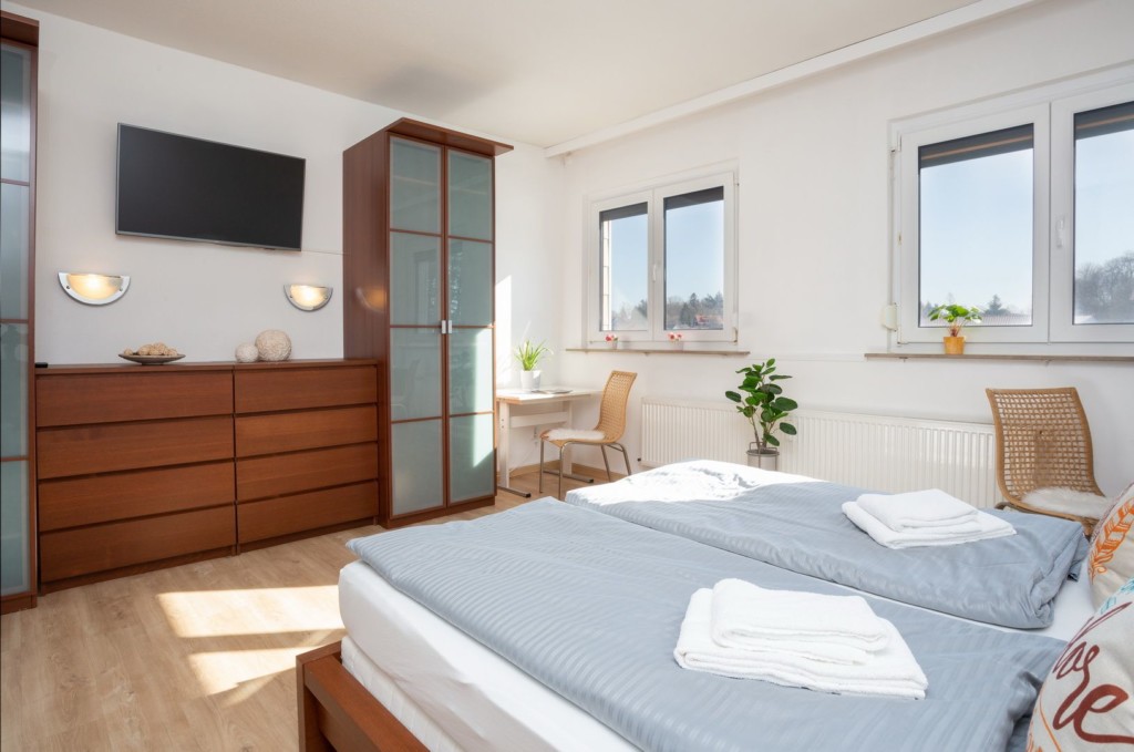 Die Schlafzimmer im Casa Natura sind liebevoll gestaltet und bieten Komfort sowie Funktionalität, um Dir einen erholsamen Schlaf und eine angenehme Nachtruhe zu ermöglichen. Das erste Schlafzimmer ist mit einem komfortablen französischen Doppelbett ausgestattet, das zweite und dritte Schlafzimmer eignen sich für Kinder oder Freunde – das erste mit einem französischen Doppelbett und zwei getrennten Betten, das letzte mit einem französischen Doppelbett sowie einer komfortablen Schlafcouch. Ein Schreibtisch in allen Schlafzimmern bietet Dir die Möglichkeit, an Deinem Laptop zu arbeiten oder Postkarten zu schreiben und ist ideal für Gäste, die während ihres Aufenthalts etwas Arbeit erledigen müssen.