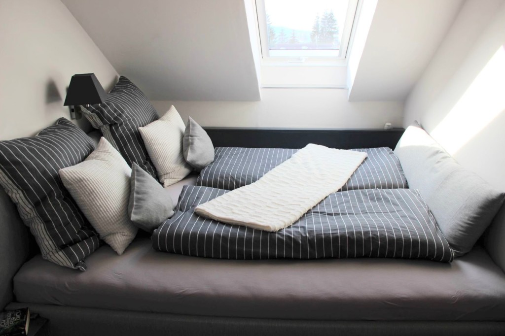 Das Doppelbett sorgt für erholsamen Schlaf, und Du hast nachts einen Blick auf die Sterne.
